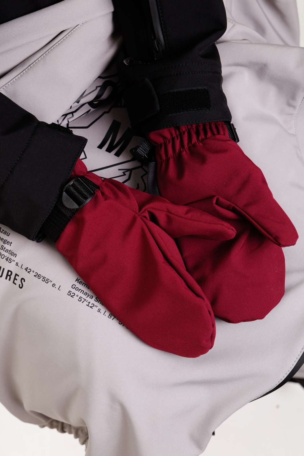 • Резинка и стропа на запястье: препятствуют попаданию снега внутрь варежек, обеспечивая дополнительную защиту.